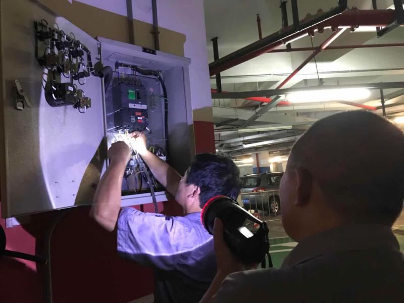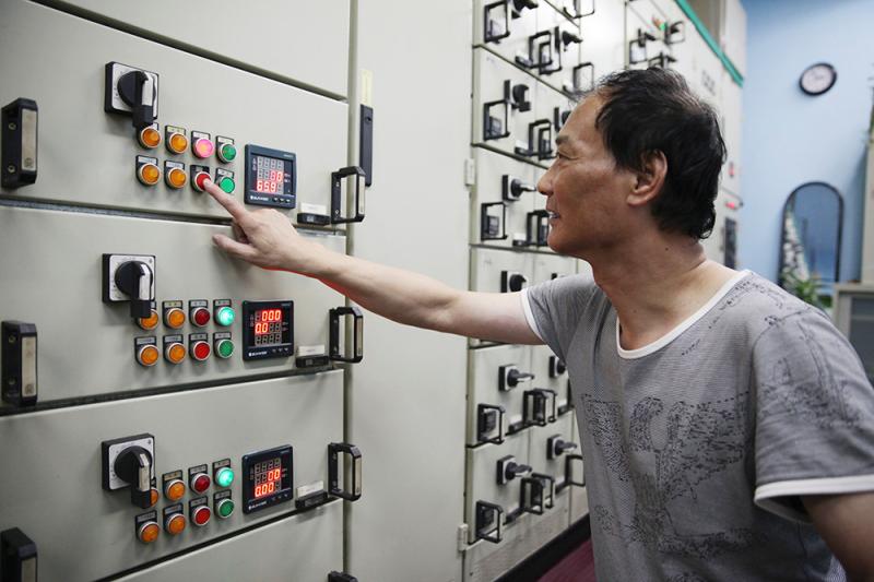 在五角场下沉广场一处地面,王明华打开井盖,带记者沿铁扶梯走到位于广场地下6米的集水井所在地,这里是整个五角场集水排水的核心地带,来自下沉广场和淞沪路地道的积水都通过这里排放。泵房里,记者看到有五个大型水泵,其中一个是自动泵,当水位接近1.2米会自动抽水,当水位超过2米,其他四个泵都会逐一由人手打开。“1.2米是安全线,只有水位达到2米,淞沪路地道才会开始积水,此时我们会打开其他泵。历史上雨势最大的时候,我们开到第三个水位就下去了。”