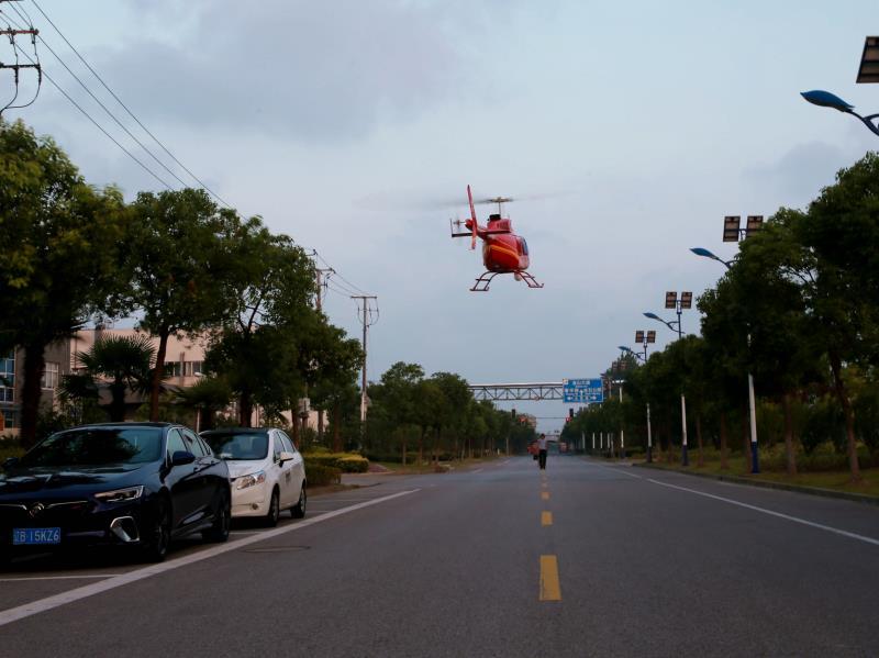 图为消防周渡中队处理一起彩钢板脱落事故,距脱落部位不到1米处架有高压电线。