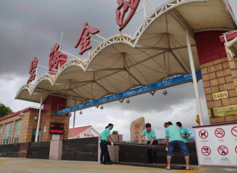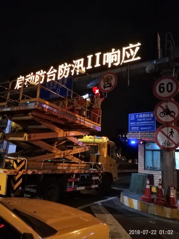 7月22日1时左右,隧道股份城市运营工作人员正在大连路隧道、浦东新区杨高路等路段加固安全警示标志。上海北横通道、沿江通道、上海轨交等拥有超深基坑(或在基坑开挖阶段)的在建工程,以及地势较低处工地、沿江沿河的工地,隧道股份对开展了全面安全检查和加固防护,特别是通过对施工现场的脚手架、排水渠道的检查,对大型机械的安全防护,对施工临时用房搭设的检查,确保重大在建项目在台风侵袭期间的安全。