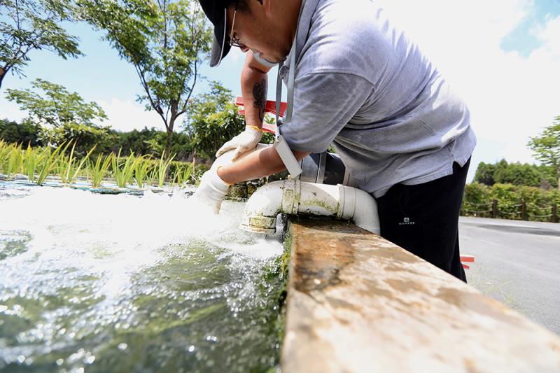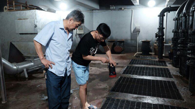 王明华正在检查集水井水位。 黄尖尖 摄