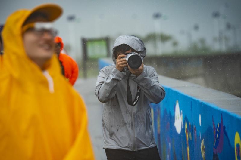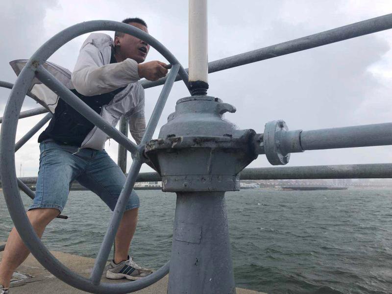 “大风大雨来了,水位上升了,我们出去巡逻,看看有没有人需要帮助的。”崇明区海塘管理所第二堤闸管理站三沙洪分站站长陶敏敏一声招呼,三名工作人员立刻穿上雨衣裤、雨鞋,准备出站沿海堤步行巡逻。记者跟随他们一起走进风雨中,尽管已“全副武装”,但风雨交加之下,记者几乎无法站稳,雨点横向击打在脸上,不出几秒钟眼镜镜片就已被雨水蒙住,完全看不清前方,只好摘下眼镜低头前行。