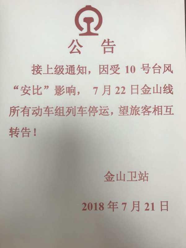 针对10号台风“安比”可能带来的影响,目前,铁路部门密切关注台风路径变化,根据风速雨量实际,将采取停运、停售、限速、迂回、折返、加开、恢复开行等措施,动态调整列车开行方案,确保旅客出行安全。涉及车次,见链接: