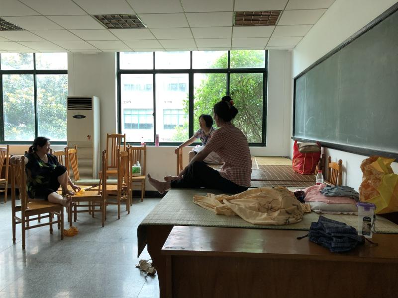 解放日报·上观新闻记者已抵达金山朱行小学,这里是一个防台二级安置点,记者黄勇娣正在向工作人员了解准备情况。