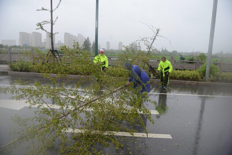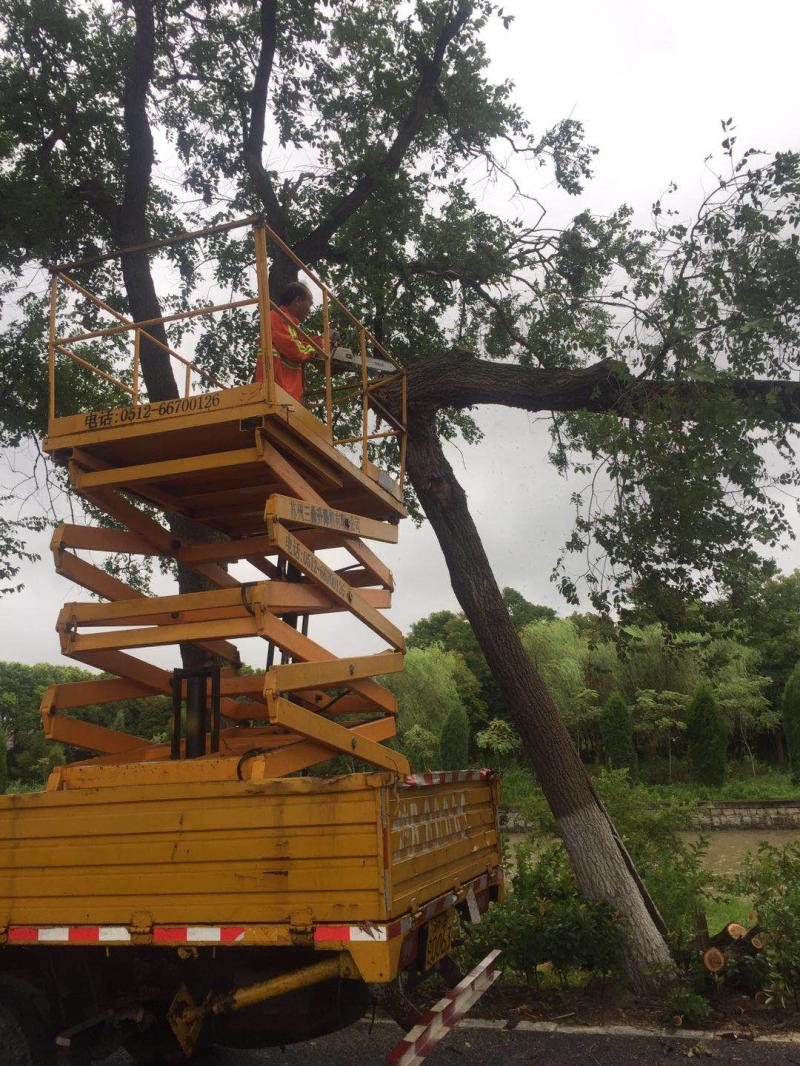 为防止台风过境树木倒伏伤及行人和车辆,杨浦控江路街道今天一早对辖区内绿化进行加固修剪。“大树树冠过于繁茂,容易造成‘头重脚轻’而被风刮倒,修枝减顶可有效避免树木倒伏。”街道负责人表示。