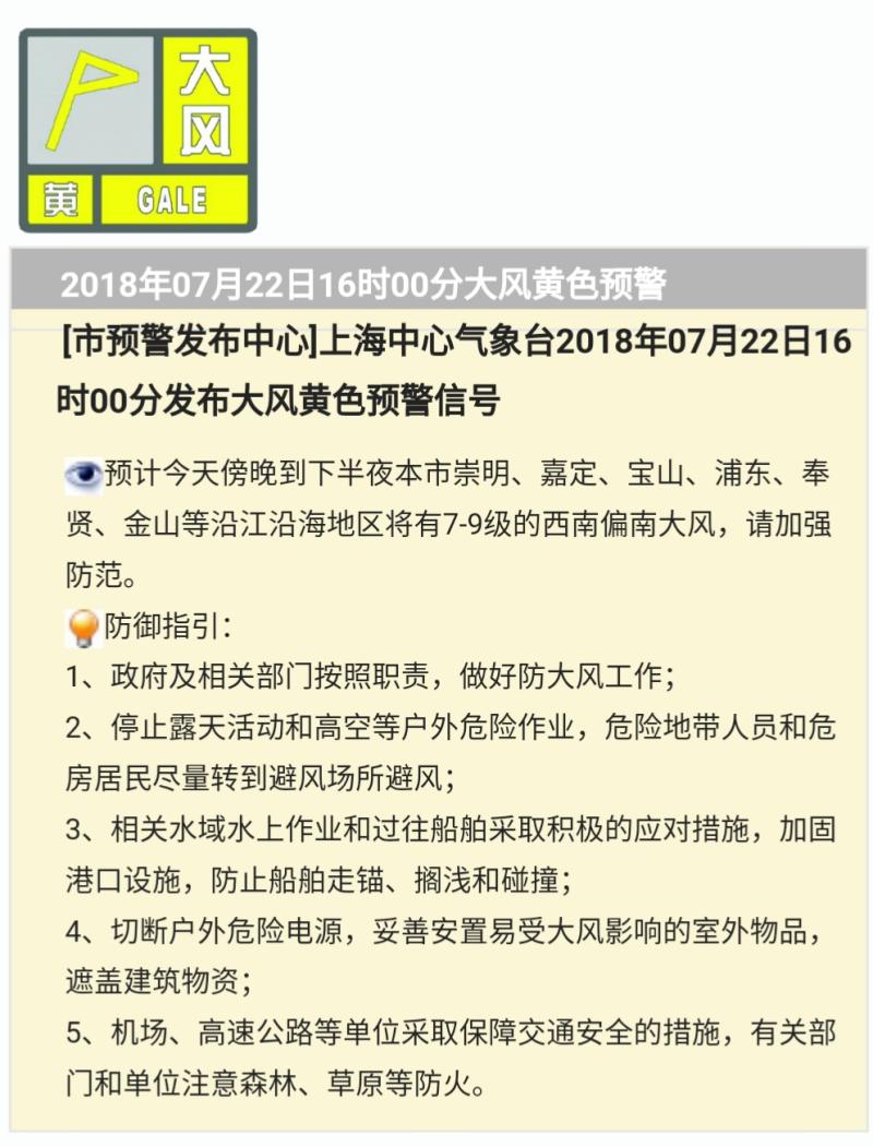 因台风预警等级升级为橙色,上海以下公园于明天(7月22日)采取闭园措施: