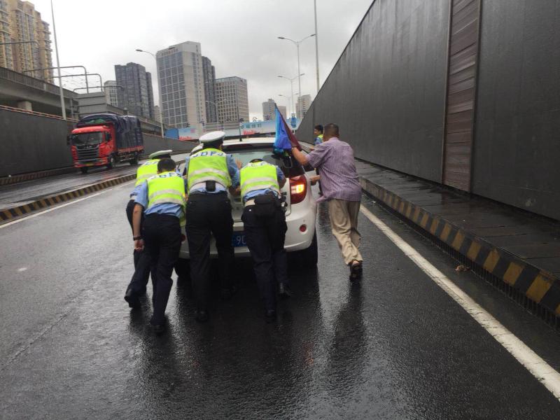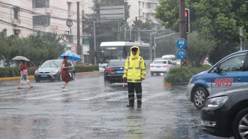 风雨肆虐,控江路隆昌路口,每辆车经过都掀起“巨浪”,杨浦交警三支队辅警宫修阳站在路口,坚定犹如一座大山。平时7点的上岗时间提前到了6点,越是恶劣天气,指挥动作越是一刻都不能停。“雨势太大,车辆看不清路况,容易产生碰撞造成堵塞,行人和非机动车经过路口时危险系数也会增加。”宫修阳站在这个路口已经9个小时,每一波车流经过他都谨慎地观察、指挥,还要随时处理路口信号灯故障、掉落路面断枝等突发情况。7个小时雨水冲刷,让他里里外外变成一个“雨人”。