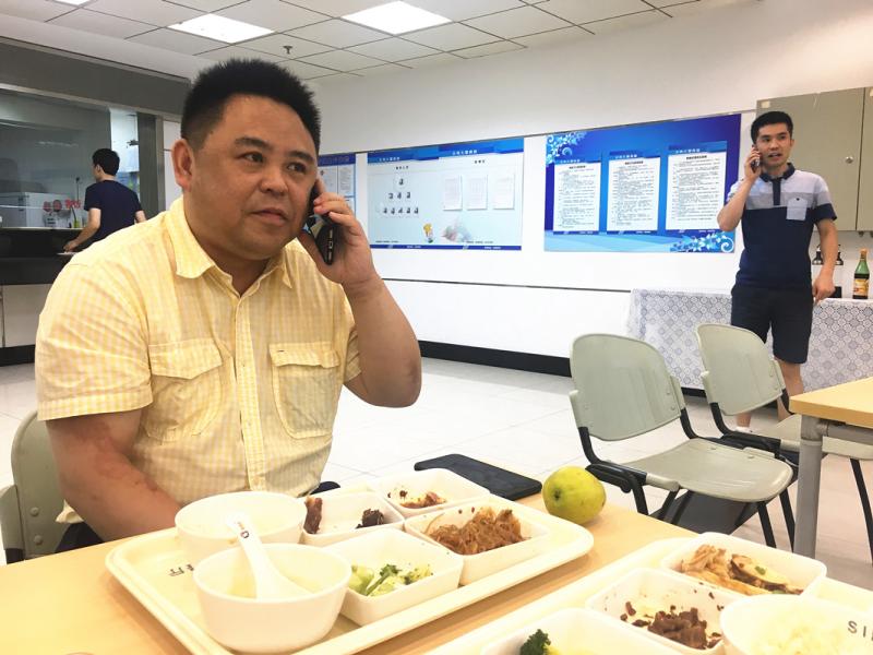 吃饭5分钟,电话占用了一半时间 陈玺撼 摄