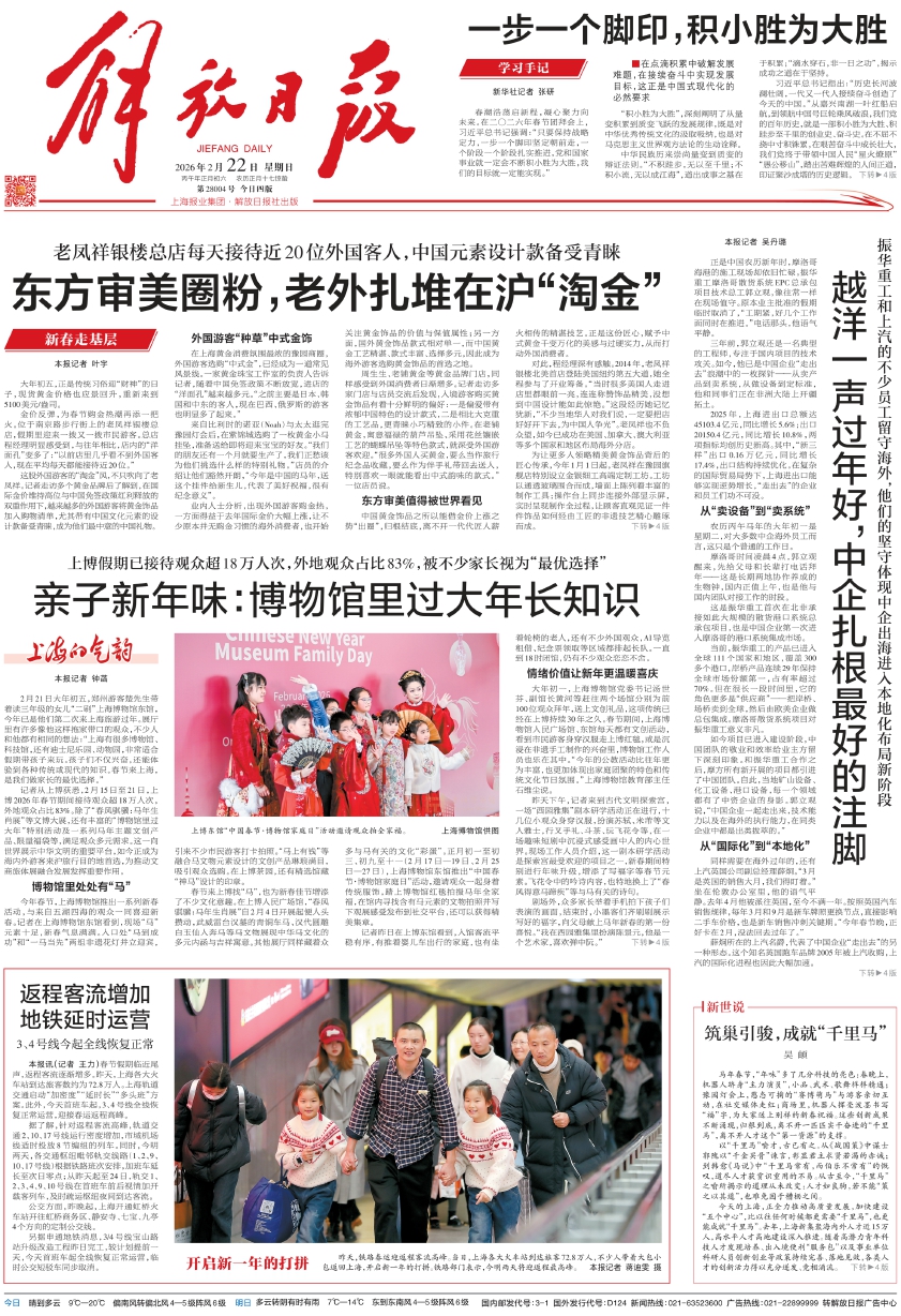 为让更多人领略精美黄金饰品背后的匠心传承,今年1月1日起,老凤祥在豫园旗舰店特别设立金银细工高端定制工坊。工坊以通透玻璃围合而成,墙面上陈列着丰富的制作工具;操作台上同步连接外部显示屏,实时呈现制作全过程,让顾客直观见证一件件饰品如何经由工匠的非遗技艺精心雕琢而成。 下转 4版