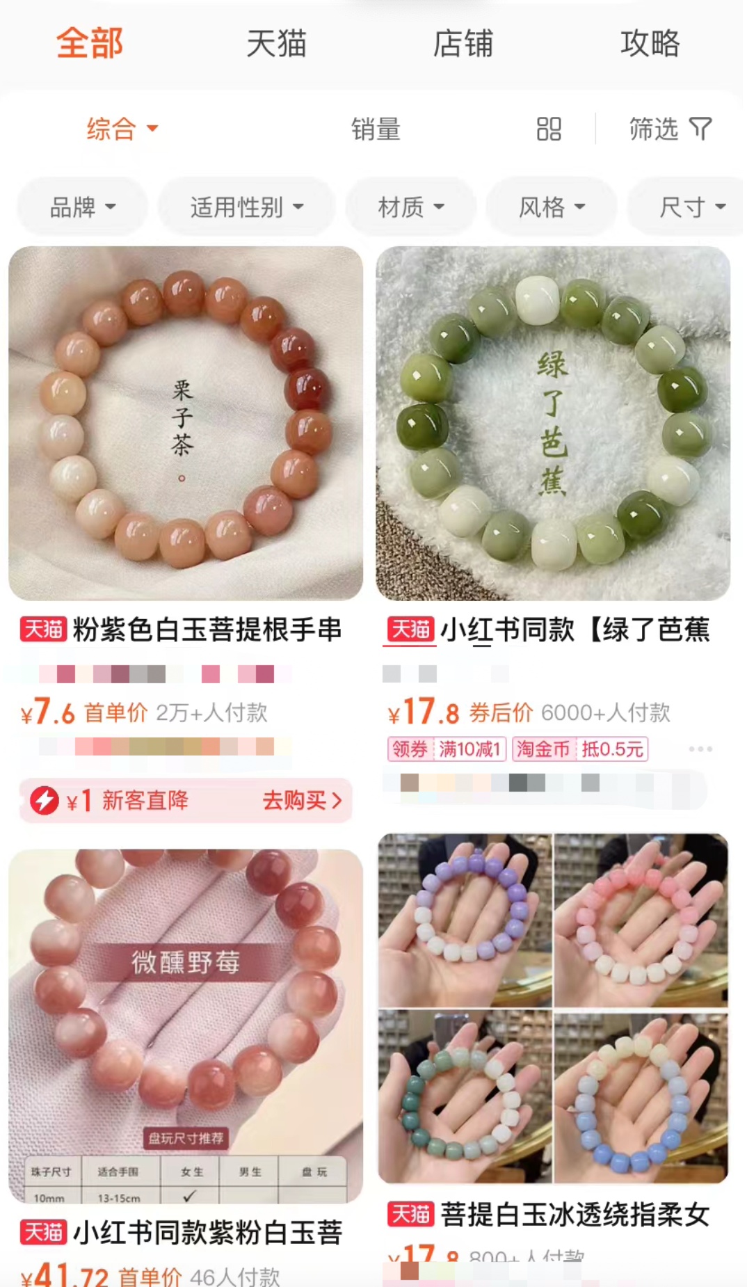 记者在某大型电商平台搜索“小学生盘串”“儿童盘串”,销量最高的商品月销过2万件。不过,孩子们对手串的取舍与成年人的取向不同,销路最好的是五颜六色仿菩提、仿玉质手串,价格则以几元、十几元居多。