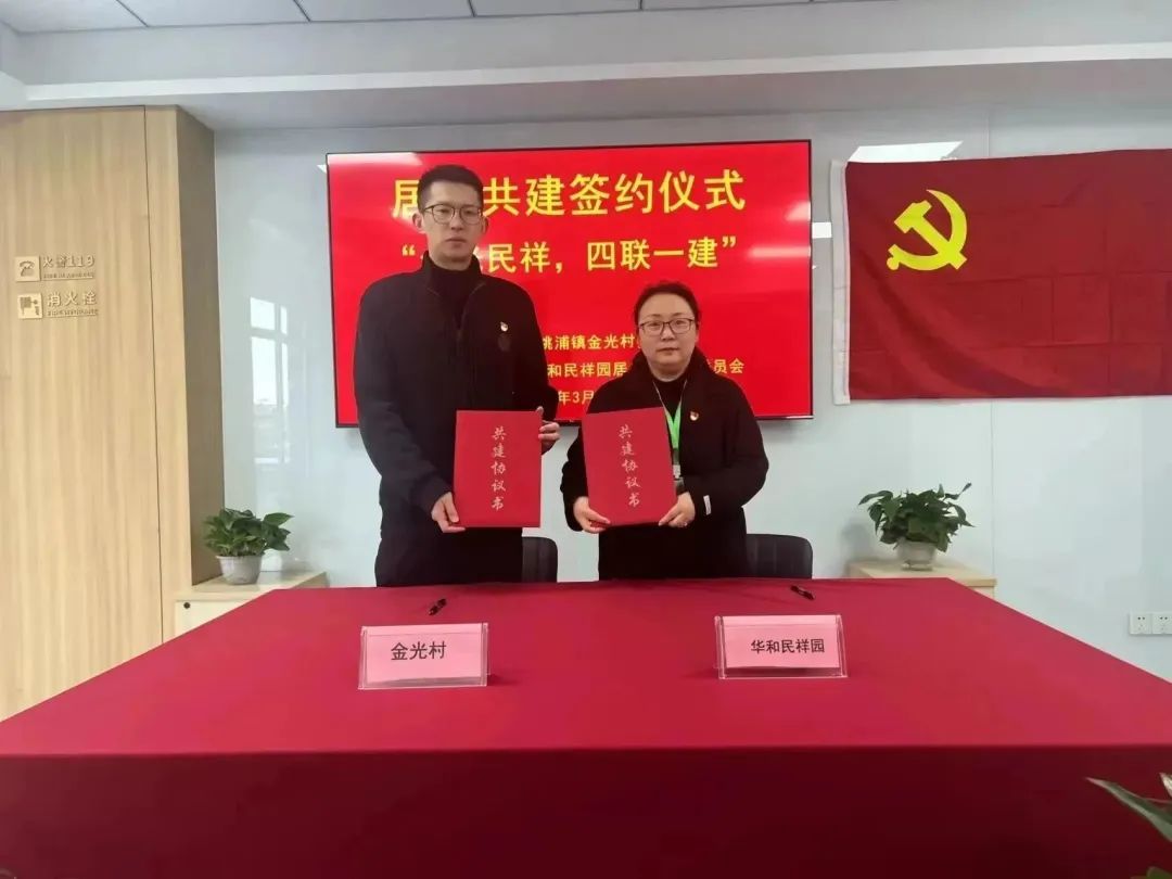 日前,华和民祥园居民区党支部和金光村党委签订的关于做好“四联一建”居村共建协议,积极拓展基层党组织功能,有助于促进双方的党建及社区治理工作迈上新的台阶。