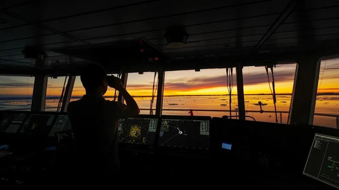 常俊宇老师驾驶“雪龙2”号在南极浮冰区航行