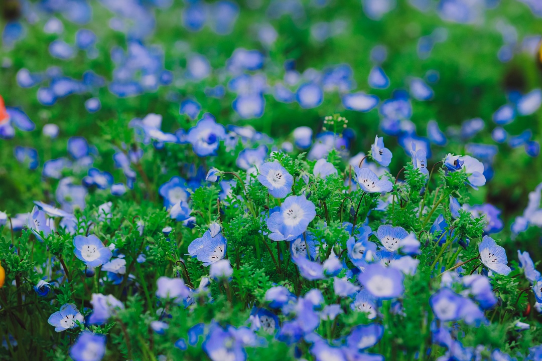 喜林草,是田基麻科喜林草属草本花卉,株高20-30cm,匍匐生长,每年9-10月播种,春天3月上旬开花,是加利福尼亚一种通常野花,生长遍及加利福尼亚为主的西海岸, 延伸到俄勒冈和整个加州,高度从海平面到2000米都有它的足迹。喜林草还有一个特别好听的英文名字——“Baby Blue Eyes”(婴儿蓝眼睛),名字应该来源于喜林草花开时中心为白色,花瓣则蓝得非常纯净。