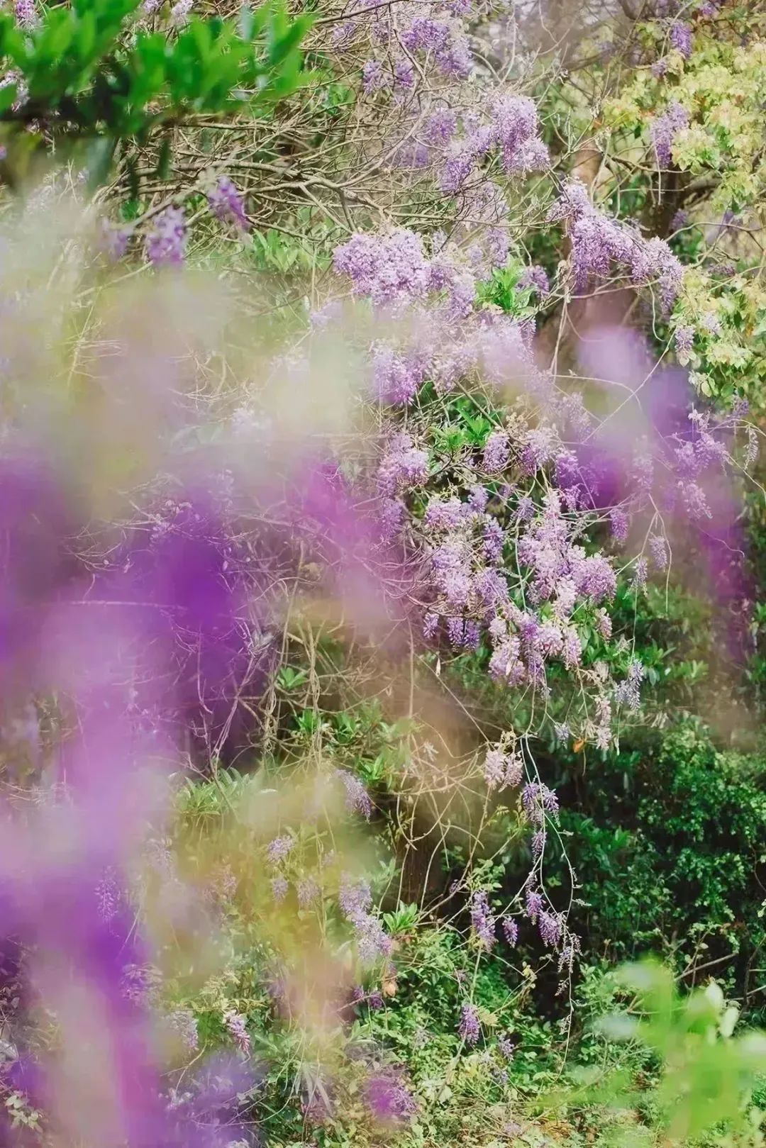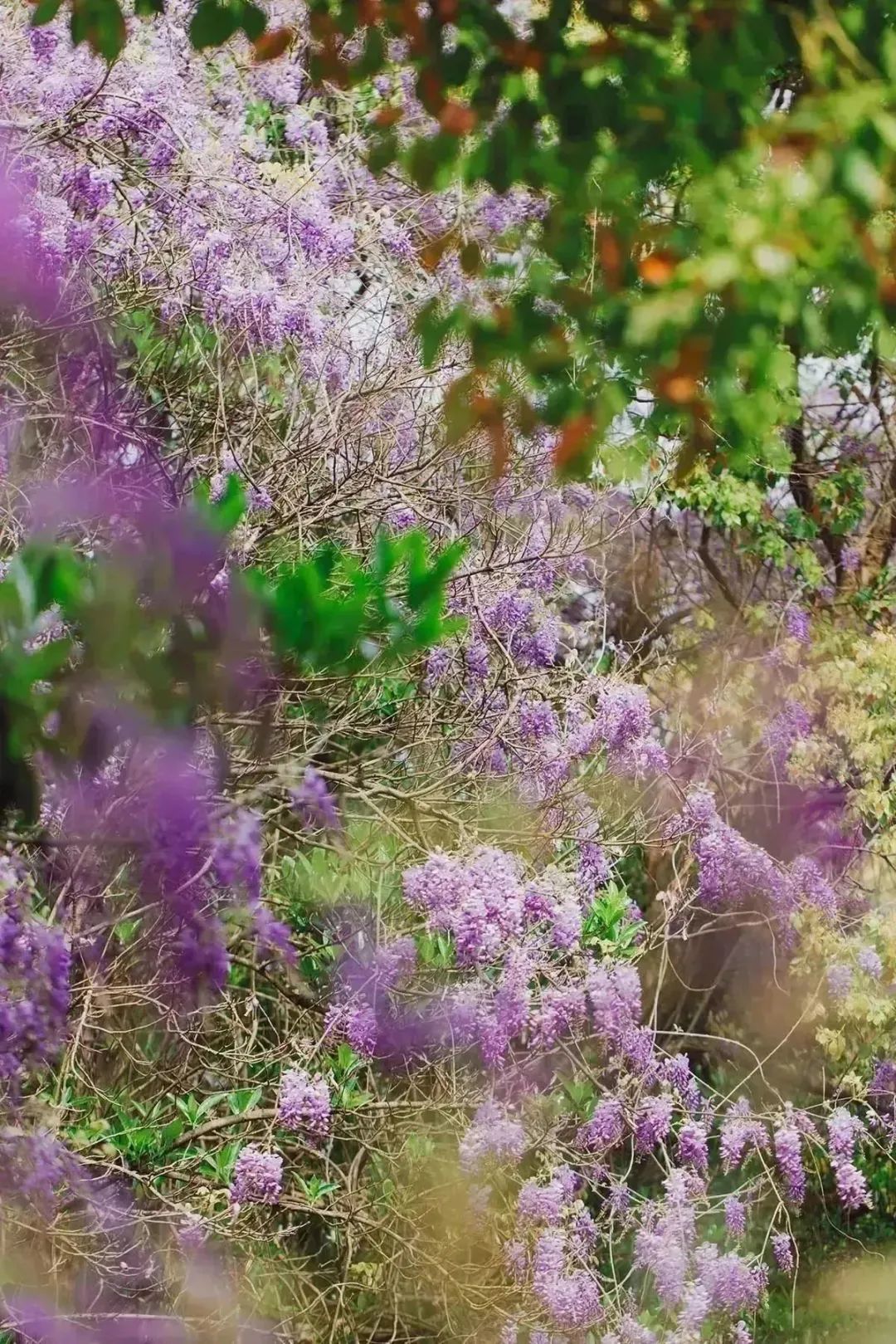 刚挥别了粉色樱海,又迎来紫色“瀑布”。最近辰山植物园水生植物园、山阳桥边河岸、矿坑花园、药用植物园廊架上空的紫、白两色紫藤花开满架,恣意生长灵动飘逸,串串花穗随风而动,灰褐色的藤蔓如游龙般蜿蜒,清幽花香拂面、沁人心脾,让人忍不住想选她作为春日气息的“最佳代言人”,暂时脱离石楠花的困扰。