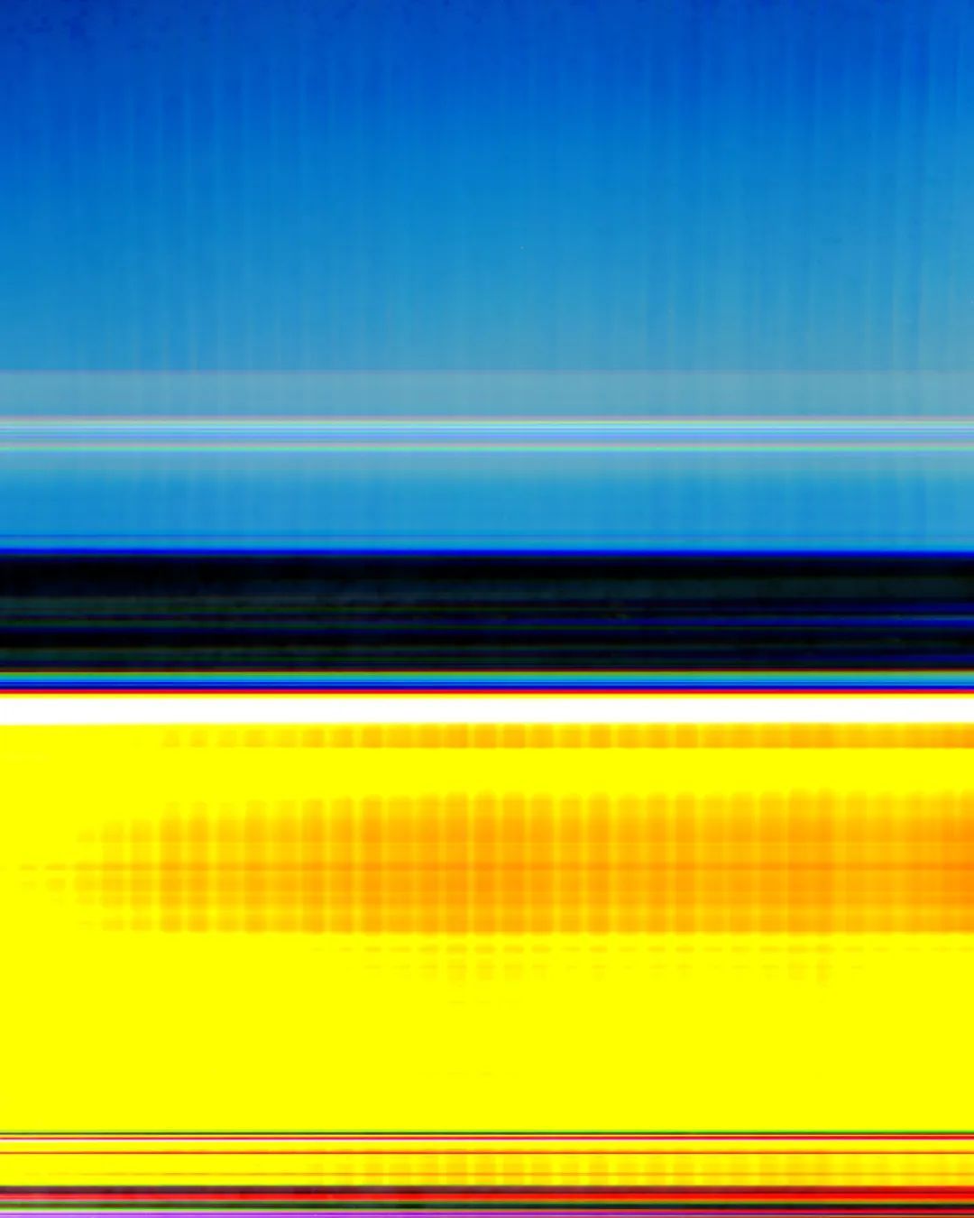 又比如作品《镜子》。这次,朱锋抛弃相机来探讨摄影的可能。他把镜子这种身边唾手可及的物件直接放到扫描仪上扫描,通过不断变换角度,呈现出一张张色彩图案,其实是在探讨光和时间的议题。有人问他,这和摄影有关吗。朱锋答,摄影和光的关系非常大,扫描也是把光留下来,这其实是一实一虚的关系。