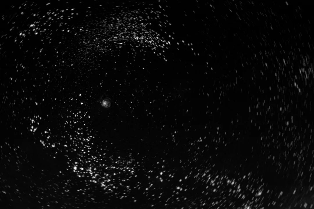 比如一次在卫生间给儿子洗澡,不小心把爽身粉弄翻洒了一地,黑色的地板上的白色爽身粉,让朱锋想起了星系的意象,拿起相机,摁下快门,向前辈托马斯·鲁夫的作品《星》致敬,形成了自己的作品《星云图》。