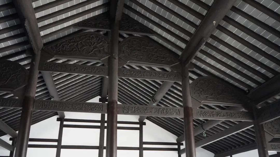 抬起头,客堂外立面转轴,是记忆中小时候长辈家屋檐下的模样,还有那镂花横窗,无论是木质的色彩还是中式流畅的线条,都给人一种宁静致远的感觉。