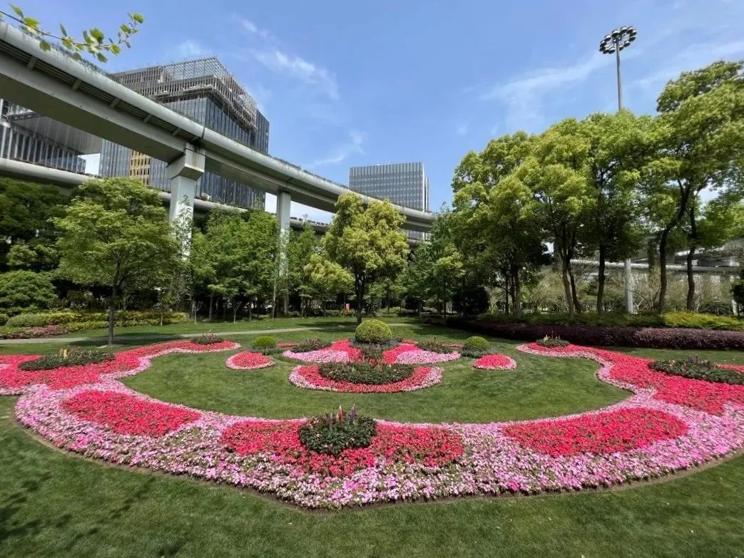 此次新建花坛主题为“连珠合璧、锦上添彩”,花坛亮丽景观与花境植物 “合璧”的美感,凝聚了园艺园林人精益求精的匠心精神,为都市生活锦上添花。