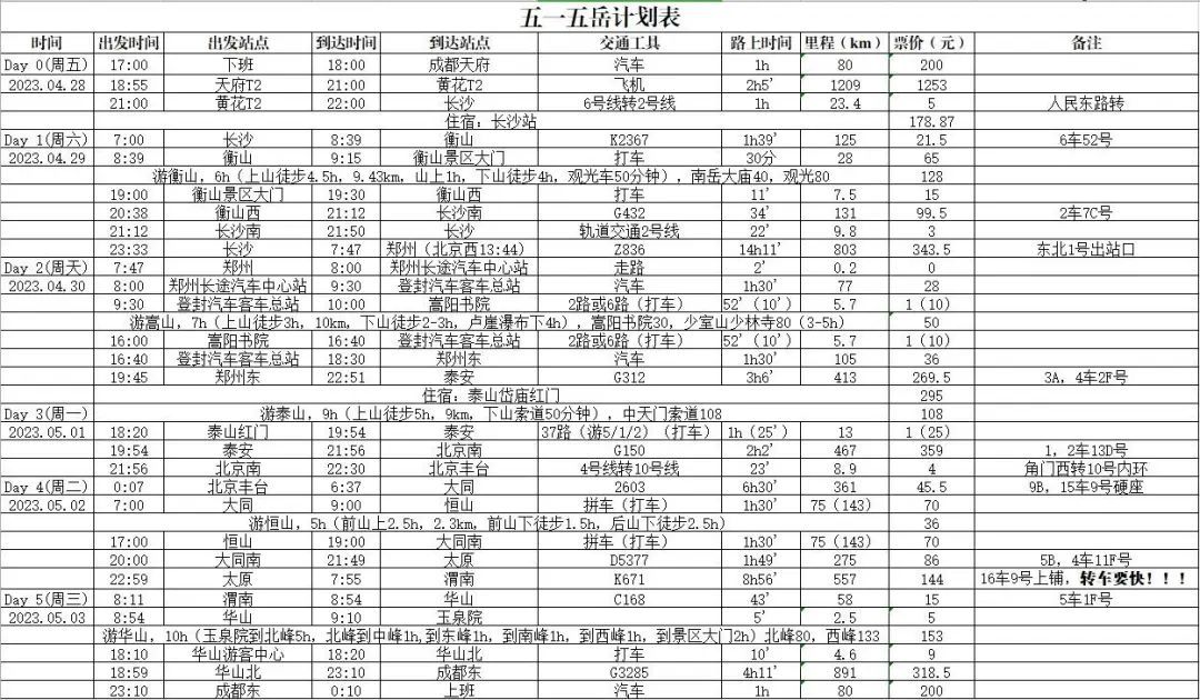 出发前,柟多多摸排了前往各地的列车和公交车次表,确定了详细的计划表。“我还是比较相信中国的铁路和公交,感觉可以让我圆满执行全程计划。”