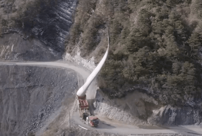 三峡能源四川金阳风电场,建设者们运送长75米、重19吨的风机叶片上山。不仅在盘山路上连转上百个急转弯,更要克服极端严寒、高原缺氧、大风暴雪等恶劣环境的影响。仅一趟,就需要半个月。