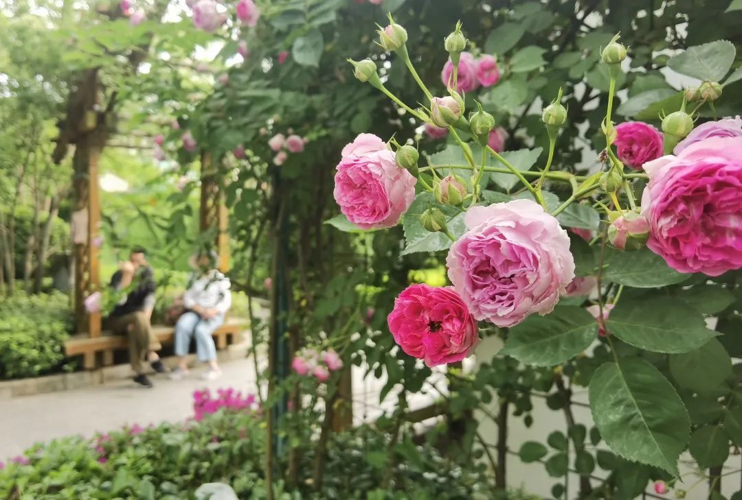 如今,桂江路南段的蔷薇花墙开得正好,中环绿廊月季园里粉色月季花海打底,黄色、白色和高高的月季植株形成层层叠叠、错落有致的浪漫花海,正是打卡好时候。你还在等什么呢?