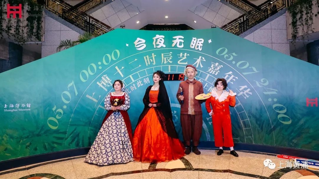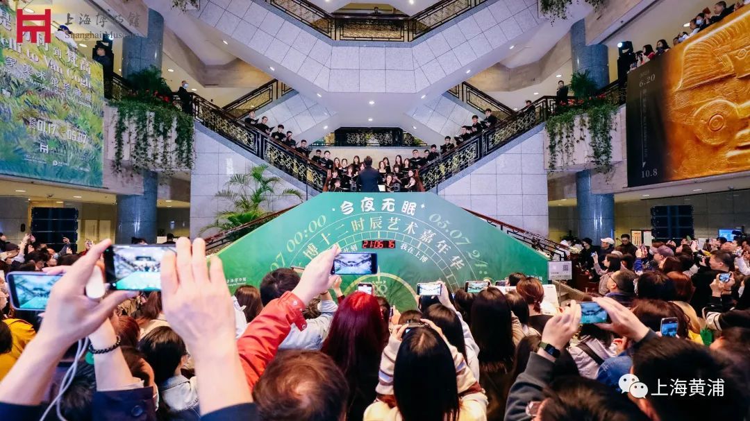 夜色渐浓,热闹的上海博物馆还响起了美妙的音乐,由上海戏剧学院二重唱组合带来的经典英文歌曲串烧、山谷人声乐团演绎阿卡贝拉,上海彩虹室内合唱团更是来到现场,将今夜无眠的艺术嘉年华氛围感拉满。