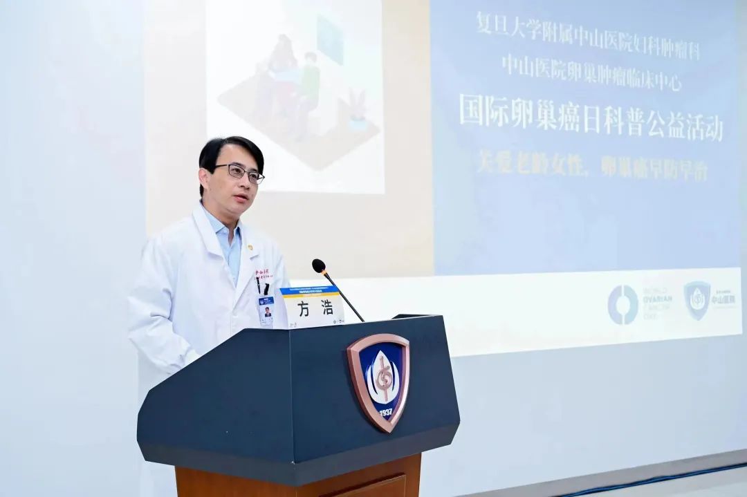 为提高女性对卵巢肿瘤的认知和预防意识,在第11个国际卵巢癌日到来之际,复旦大学附属中山医院闵行梅陇院区(上海市老年医学中心)妇科肿瘤科、卵巢肿瘤临床中心,与梅陇镇社区卫生服务中心、街道合作,于5月8日下午举办“关爱老龄女性,卵巢癌早防早治”科普公益活动,这也是复旦中山连续第9年在国际卵巢癌日开展科普公益活动。到场的100多名患友和社区居民认真聆听了科普讲座,并在会后积极向专家提问。居民们通过本次活动提高了对卵巢癌的认知和预防意识,为复旦中山卵巢肿瘤临床中心团队在卵巢癌“早期诊断,精准诊疗”的先进医疗技术及不懈努力点赞。