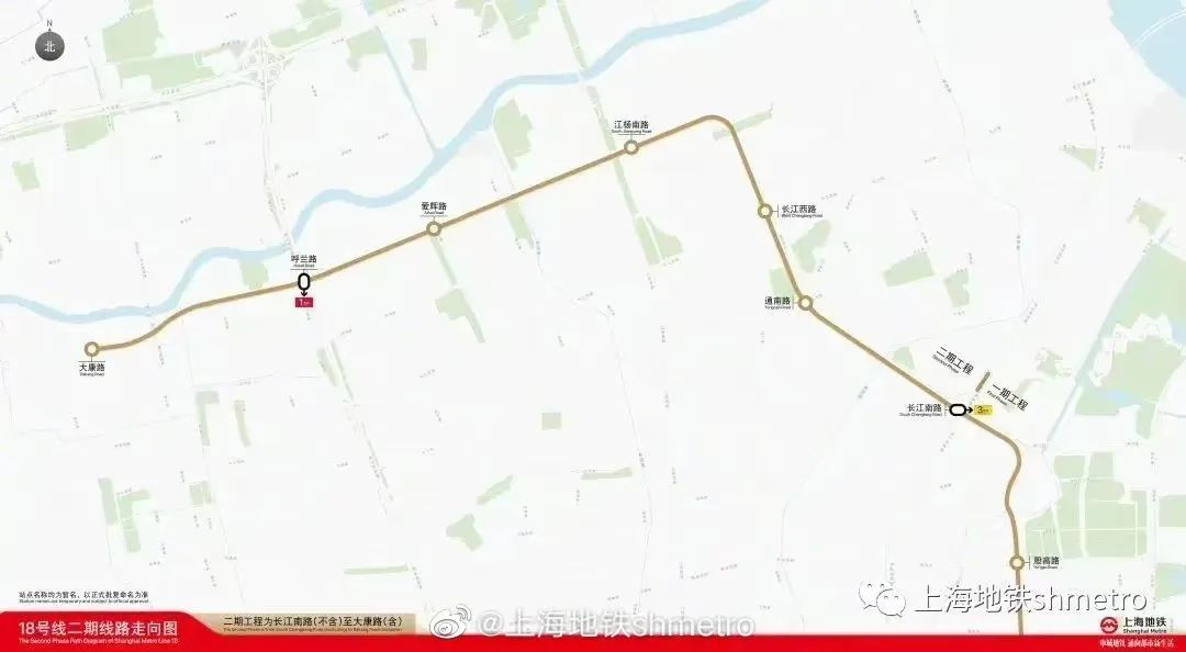 上海轨道交通18号线二期位处宝山区,起于一期工程终点站长江南路站,至大康路站,正线长约8.1km,全部为地下线,共设6座车站。18号线二期建成通车后,将进一步提升主城区北部区域东西向运力,进而服务吴淞地区转型发展、绘就宝山区“北转型”新篇章。