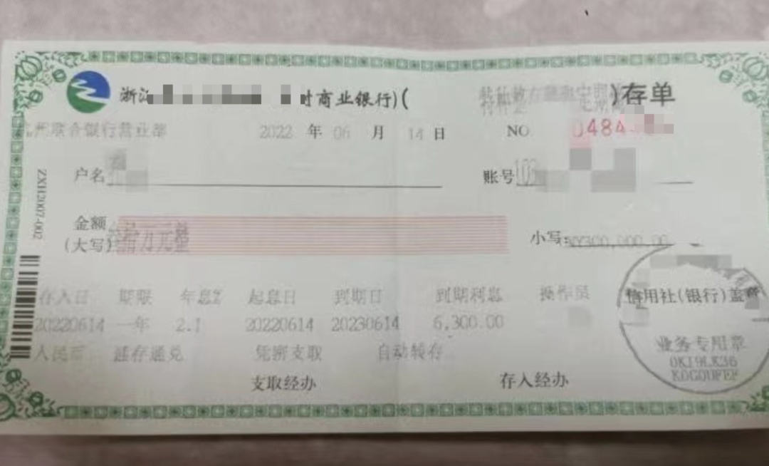 王女士是杭州一位全职宝妈,手头有好几张银行存款。有两张整存整取的一年期储蓄存单,即将在6月14日到期,这两张存单面额都是30万元,利率是2.1%,到期后,每张都能收获6300元的利息。