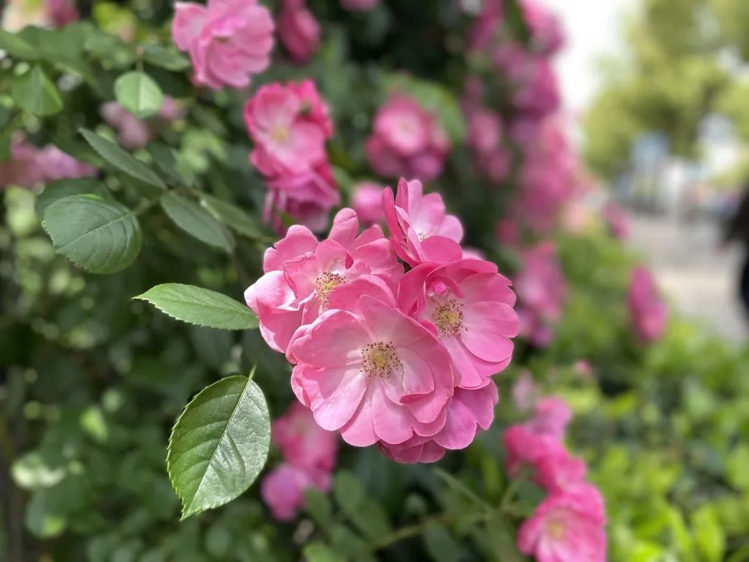 目前,龙胜路(蒙山路以西)两侧的“月季花海”迎来了一年里最集中的开放季。在龙胜路人行步道,延绵几十米的月季花爬满了小区的外墙。阳光透过树叶洒在了粉色的花朵上,显得更为娇艳。微风拂过,片片花瓣随风摇摆,好似风中起舞的精灵。不少路过的市民也拿出手机,想要记录这美丽的一刻。