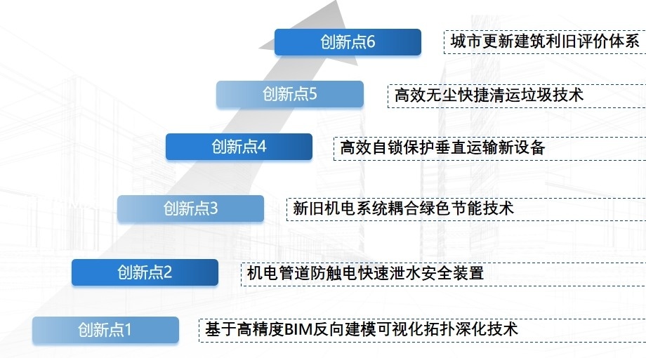 据介绍,中建五局安装公司华东公司把“绿色”融入改造施工全过程中,六项创新的绿色施工技术包括“基于高精度BIM 反向建模可视化拓扑深化技术”“城市更新建筑利旧评价体系”“高效自锁保护垂直运输新设备”“高效无尘快捷清运垃圾技术”“机电管道防触电快速泄水安全装置”“新旧系统耦合绿色节能技术”等内容,注入可持续发展的理念,助力项目提升节能、节水、节材的效果。随着这些创新技术的成功研发和应用,不仅为让城市更新项目蕴含了十足的“科技感”,同时也为商用建筑领域的节能减排提供有力的技术支撑和借鉴,也为社会环保事业作出了积极贡献。
