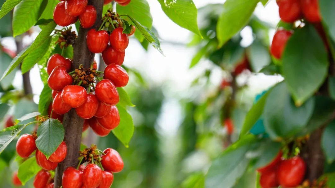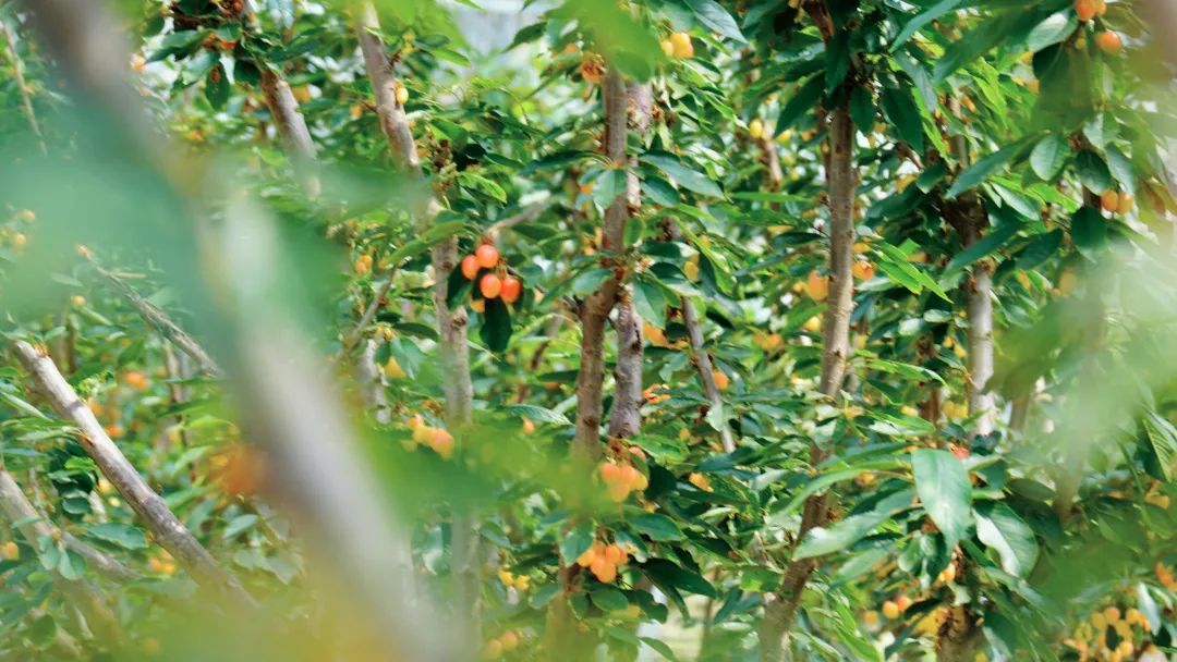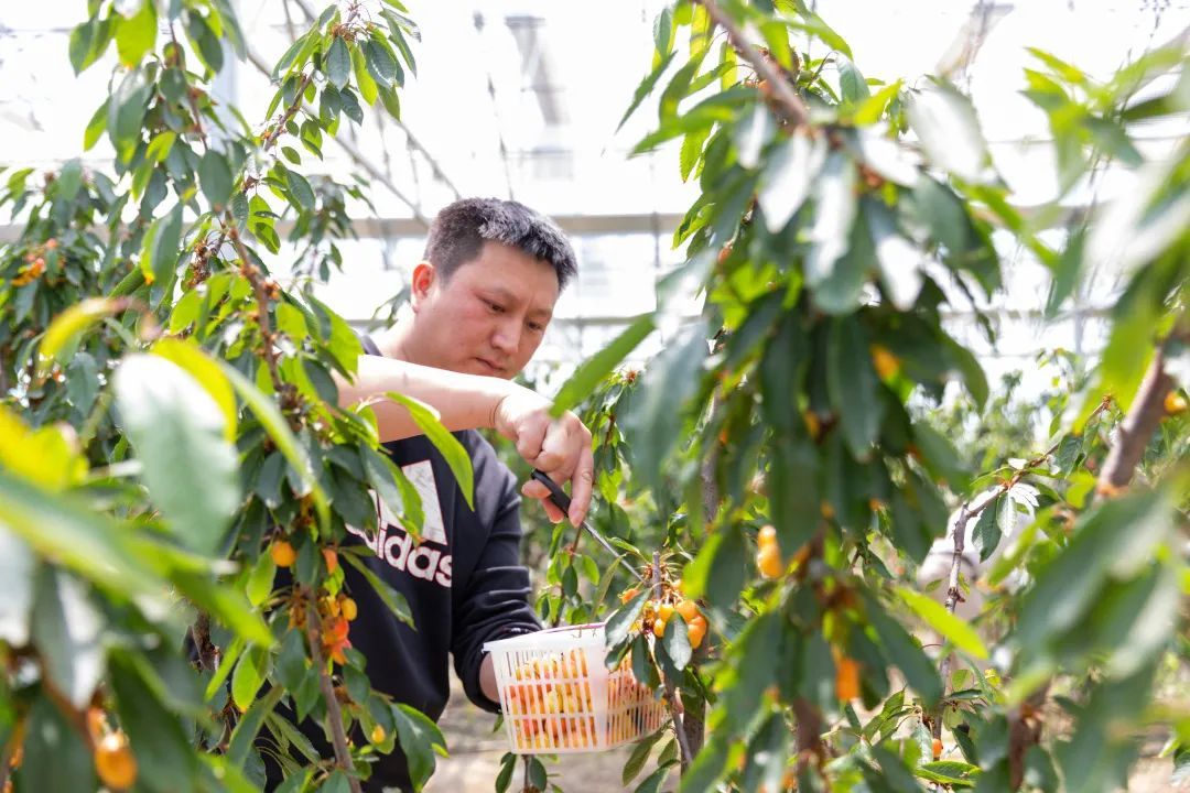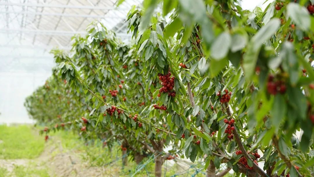 樱桃种植大棚内,各个品种的樱桃都已进入成熟期,鲜嫩的果儿挂满枝头。它们的颜色鲜艳欲滴,让人看起来就觉得很有食欲;它们的形状小巧玲珑,一口下去满满的幸福;它们的口味酸甜多汁,是专属初夏的味道。