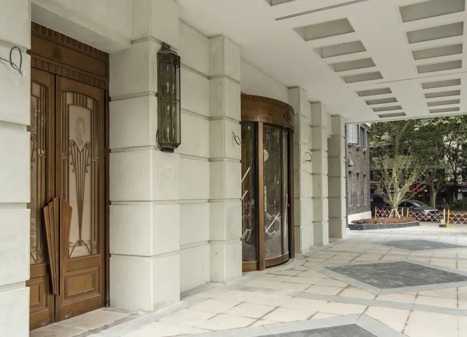 修缮设计根据历史原状去除了多余的装饰,拆除了雨篷立柱,按历史风格恢复了悬挑的雨篷和入口处有装饰艺术特色的灯具。