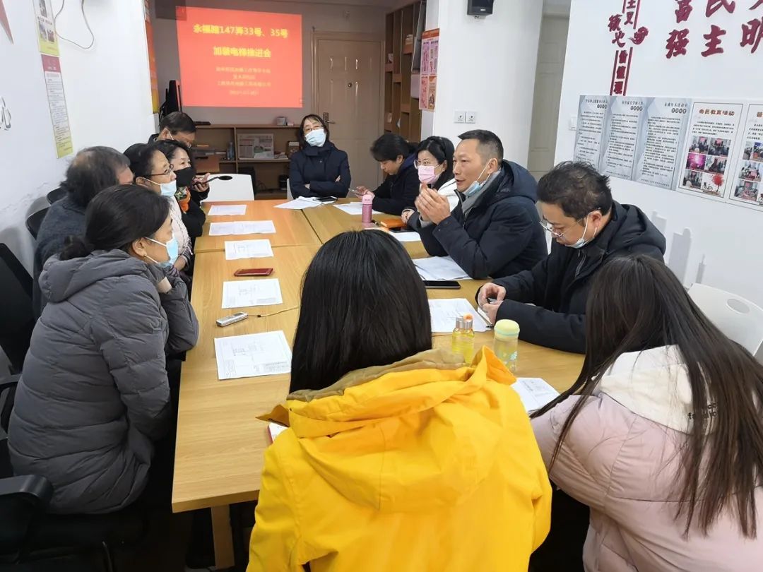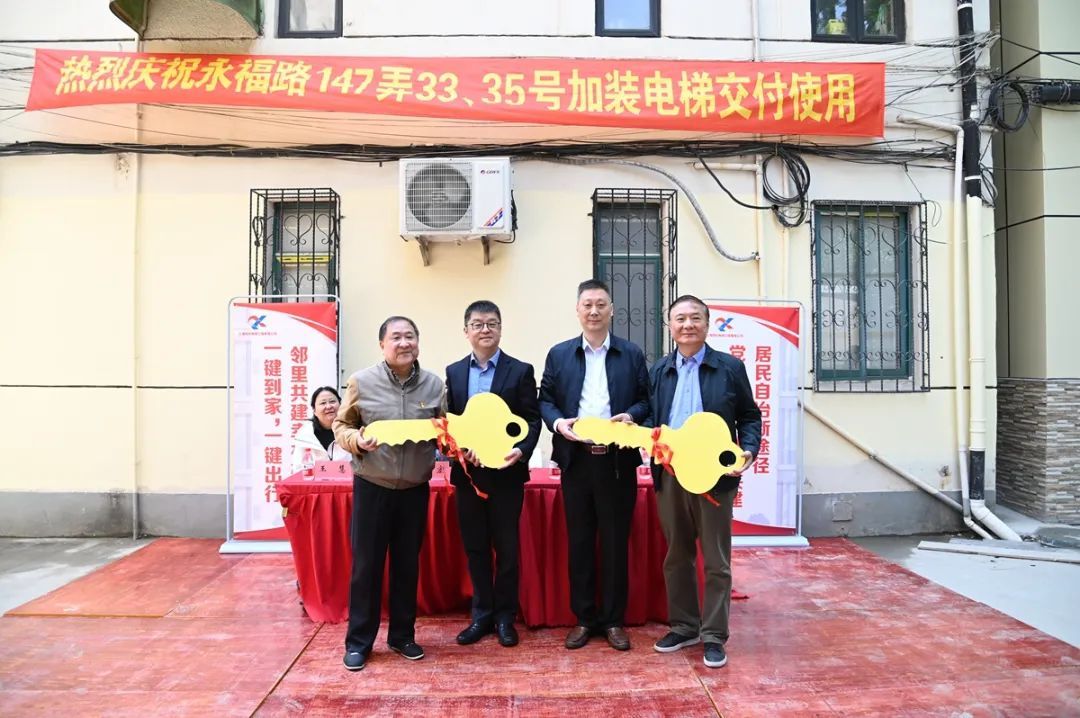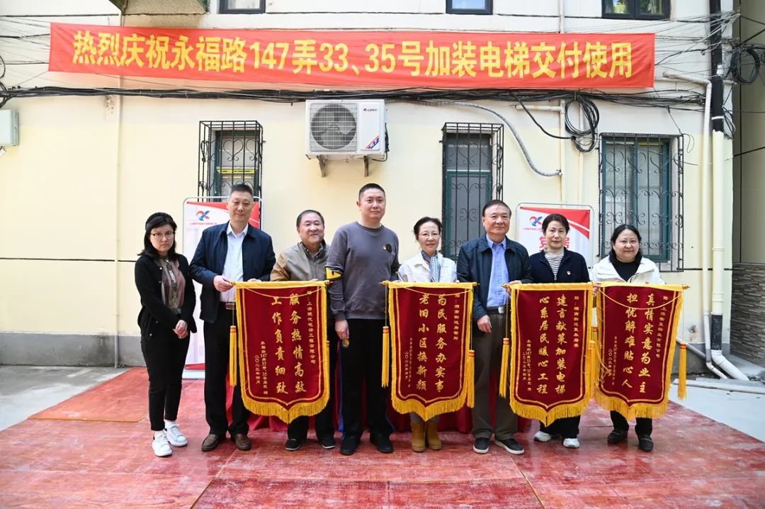 “33号、35号居民‘下楼难’问题一去不复返了!”在居民代表王小龙慷慨激昂的陈词中,永福路147弄33号、35号楼既有多层住宅增设电梯项目圆满完成。