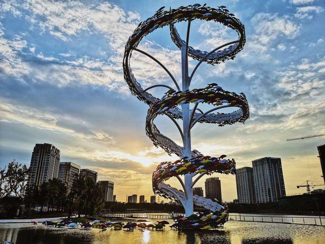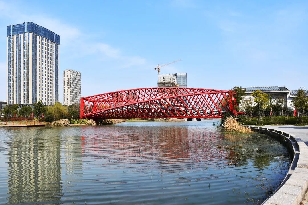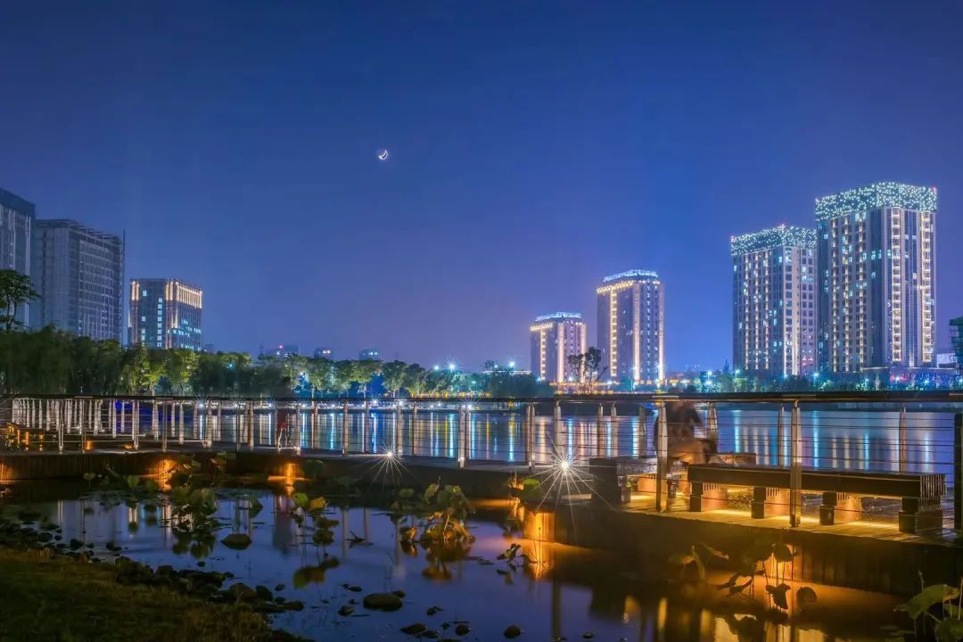 五龙湖滨水公园以“舞龙”为题,左耸右伏,九曲十回,打造流畅丰富的景观空间。沿湖设置慢行步道、景观廊架、亲水栈道、休闲草坪等游憩设施,塑造出了形式多样、体验丰富的亲水岸线,为市民提供了一个健康、多元、互通、易达的绿色步行网络和宜人游憩环境。