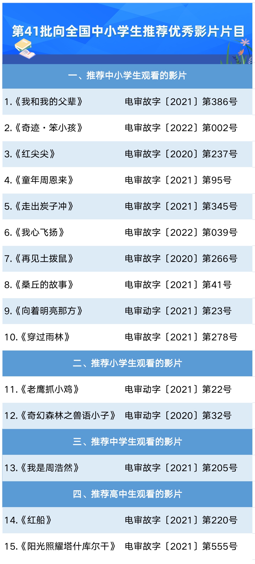 来看片单!教育部、中宣部向全国中小学生推荐优秀影片