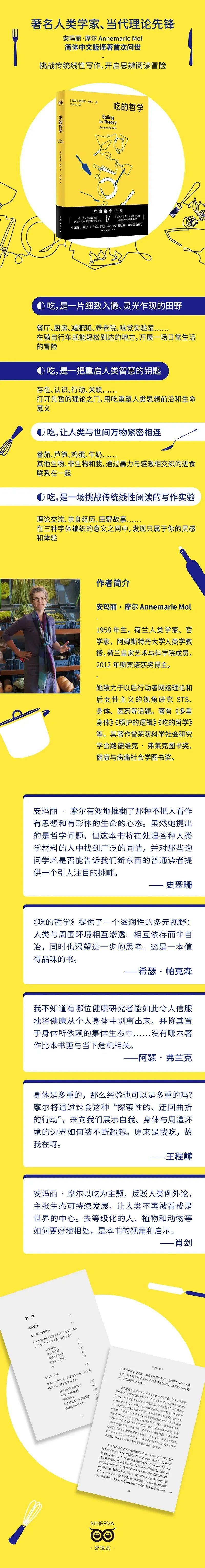 《吃的哲学》是荷兰著名人类学家安玛丽·摩尔首部简体中文版本著作。在当代人类学的本体论转向和女性主义思潮中,安玛丽·摩尔是一位不可或缺的理论先锋。有着医学、哲学、人类学三重背景的她,凭借其《多重身体》《照护的逻辑》等理论著作和举重若轻的文笔,为学者提供了大量思想资源,也为身处万物缠结中的普通人提供了日常反思的可能性。