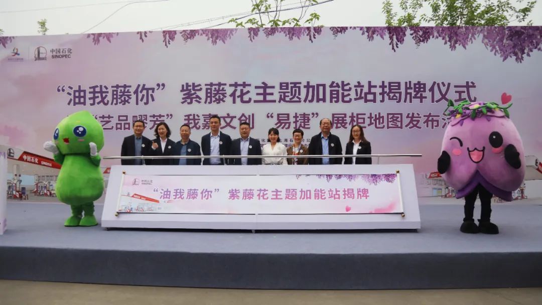 昨天(5月11日),由嘉定区精神文明建设委员会办公室与中国石化销售上海沪西石油分公司共同举办的“油我藤你”紫藤花主题加能站揭牌仪式暨“艺品疁芳”我嘉文创“易捷”展柜地图发布活动,在中国石化上海石油戬浜加能站举行。