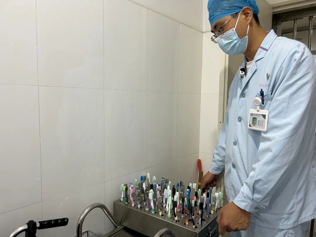 “刷子在这里属于危险物品,以前也发生过病人把牙刷掰断吞咽的情况。加上病人自理能力差、依从性差,我们就把牙刷统一管理。”李相说。