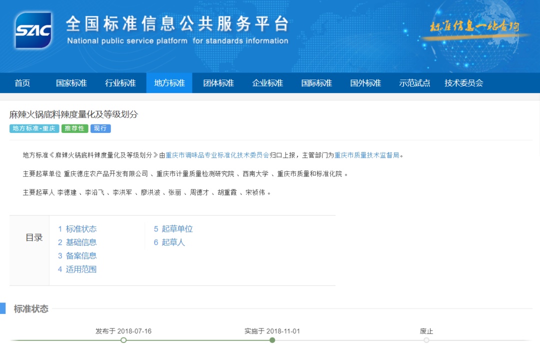 2018年,重庆市质量技术监督局发布了《麻辣火锅底料辣度量化及等级划分》,对辣度进行了分级(150SHU=1辣度)。不同于我国唯一强制执行的食品标准——食品安全标准,《麻辣火锅底料辣度量化及等级划分》属于推荐性的地方标准,并不为人熟知。