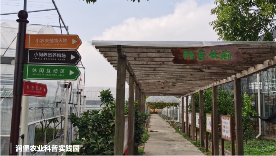 润堡农业科普实践园内设科普长廊、生态农业展示区、科普教育教室和小会议室、小农夫植物天地、一米菜园、采摘互动体验区、小饲养员养殖互动体验区及生态休闲区等板块。科普园以“弘扬生态农业,体验绿色生活”为核心,以“生态循环农业、智慧科技农业”为载体,有效利用园区内作物种植、动物养殖、果蔬栽培、园艺鉴赏、农事体验等多模块的特点,进行生态循环农业科普知识的传播。