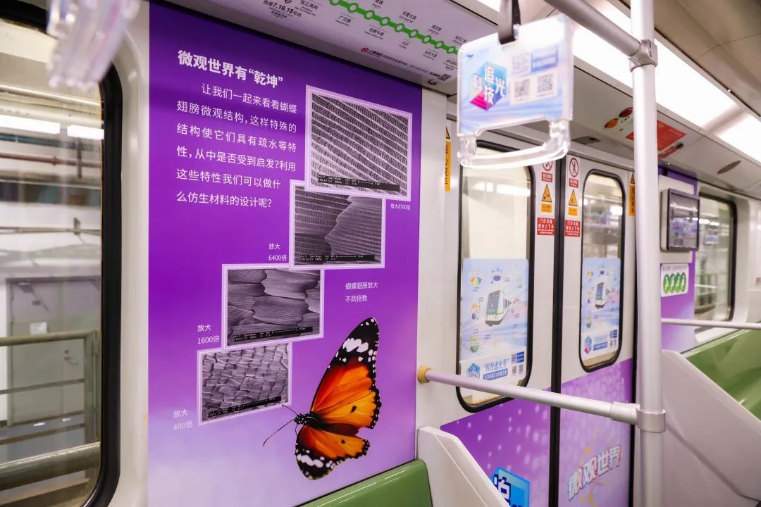 市科委介绍,百年老镜再观星、放大8700倍的蝴蝶翅膀、中国第39次南极考察队拍摄的珍贵影像、中国空间站、上海光源、珍稀濒危动植物保护等一批优秀科创成果、缤纷科普知识,在上海地铁2号线列车上就可一饱眼福。