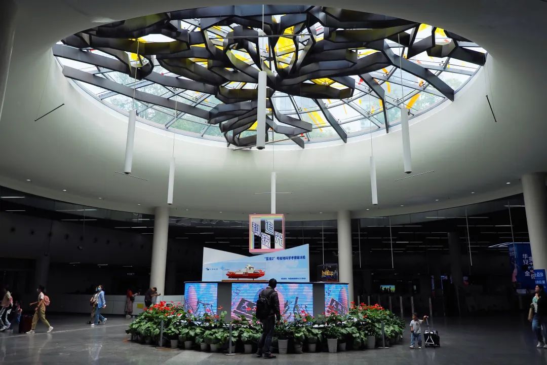 本次科普进地铁活动,还得到了中国船舶集团第七〇八研究所的支持,首次将3艘中国海上“大国重器”等比例缩小模型,集中搬至地铁人民广场站中央展台,让匆匆过往的乘客,可一睹中国海洋科技的风采。