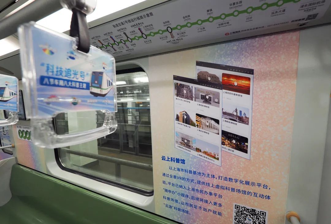 除科普主题列车、科创实物展示、还策划了科普地铁文化长廊、原创科普表演地铁行,以及未来科普进浦江客轮、进商圈等活动。以科技赋能,将上海优质科普资源输出到更多城市公共空间,打造城市文明科普“新阵地”,为加快上海国际科创中心建设提供支撑。