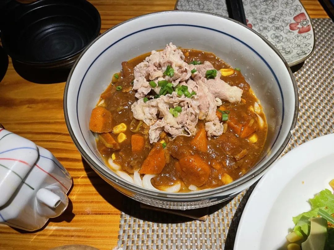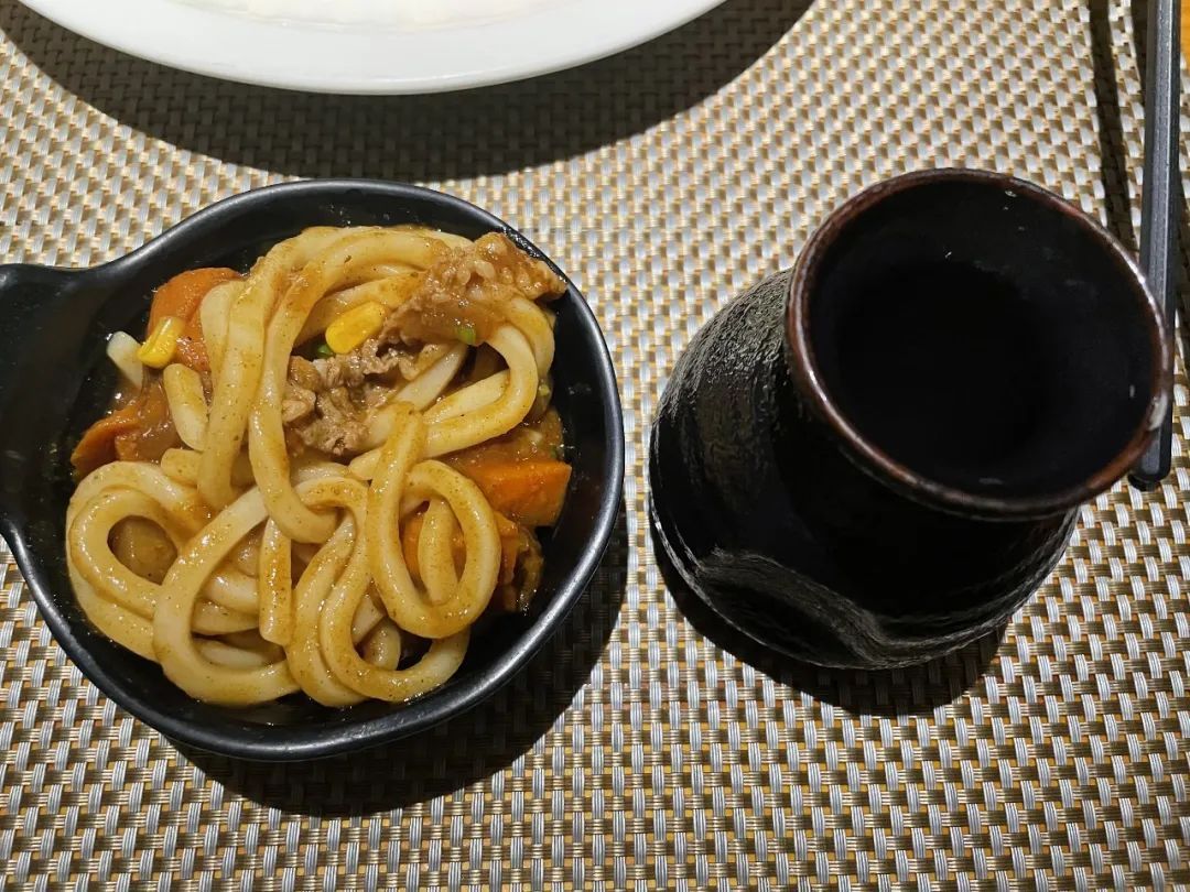 如果是喜欢“重口味”的食客,不妨可以尝试下店里的另一道热门——牛肉咖喱乌冬面,它既可以做干拌,也可以加汤,满足了食客个性化的选择。第一口下去会感觉到咖喱有点辣,但是咖喱的香味却很浓厚,配上土豆、胡萝卜、玉米粒等等让口感富有了层次。