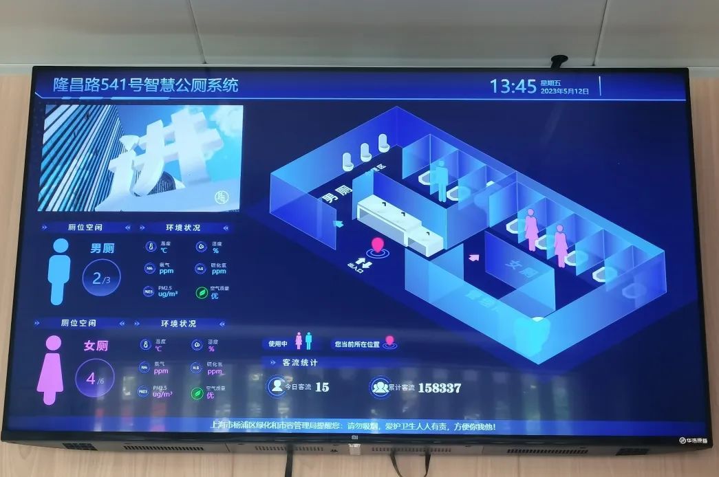 公厕管理员张树军表示,公厕周边居民比较多,人流量比较大,“我们平时会通过显示屏来查看公厕使用情况,及时做好‘一客一洁一消毒’。有了智慧公厕系统,大大提高我们的工作效率。”
