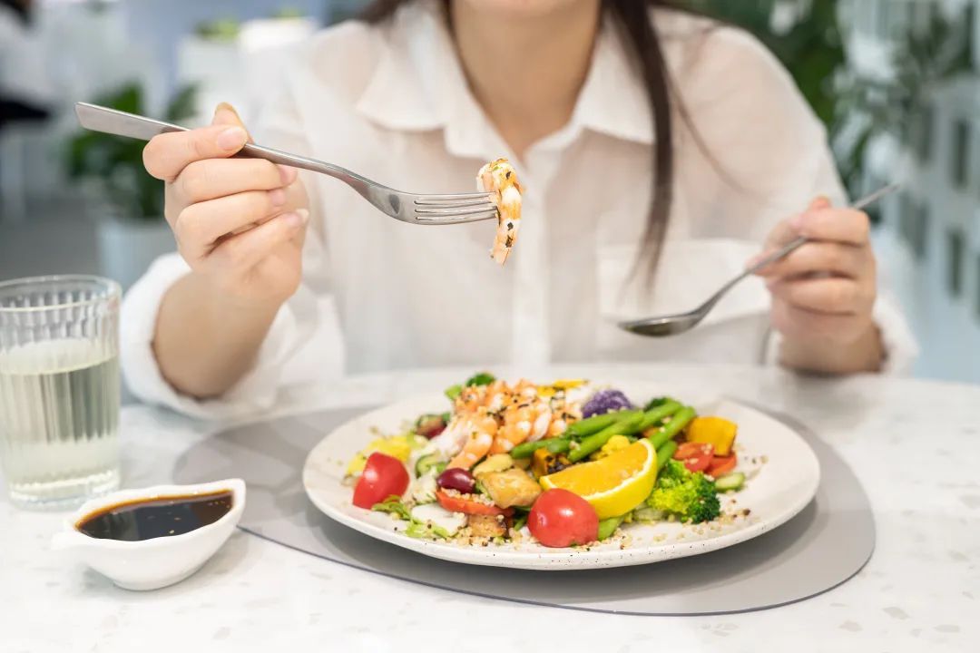 晚餐提倡吃到七分饱即可,所谓七分饱就是胃里还没有觉得胀,没有负担感,食欲已经减弱,习惯性地还想再吃几口。
