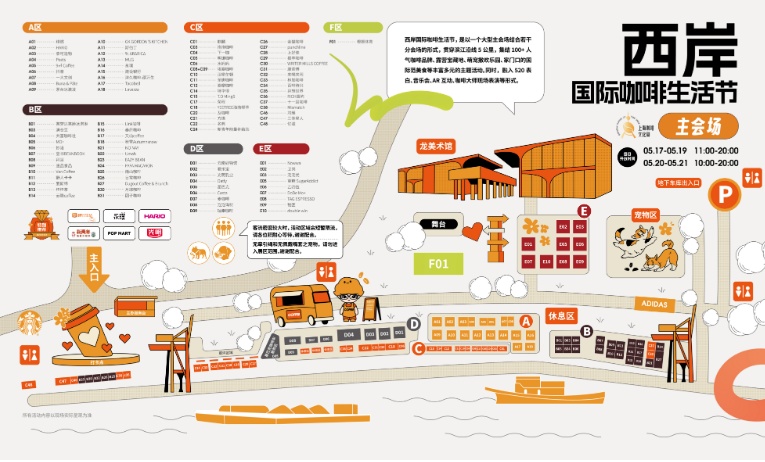 最全品牌、最长岸线,打造上海浦江沿岸最大规模的“国际生活集市”。本次西岸国际咖啡生活节的活动主会场位于徐汇滨江龙腾大道公共区域(滨江绿地至滑板公园),涉及滨江沿线5公里,堪称“最长岸线”的咖啡市集。主会场亮相的100多家咖啡品牌中,既有星巴克、Lavazza、McCafé、Costa、Peet’s Coffee等业界大牌,也有永璞、Nowwa、瑞幸咖啡等业界新贵,每一家都各有特色,一站式体验咖啡文化。值得一提的是,活动现场专设云南展台,特邀云南保山比顿咖啡、石屏绣美彝山文化等东西部企业来到现场,让云南咖啡走进上海城市,让红河非遗点缀西岸文化。