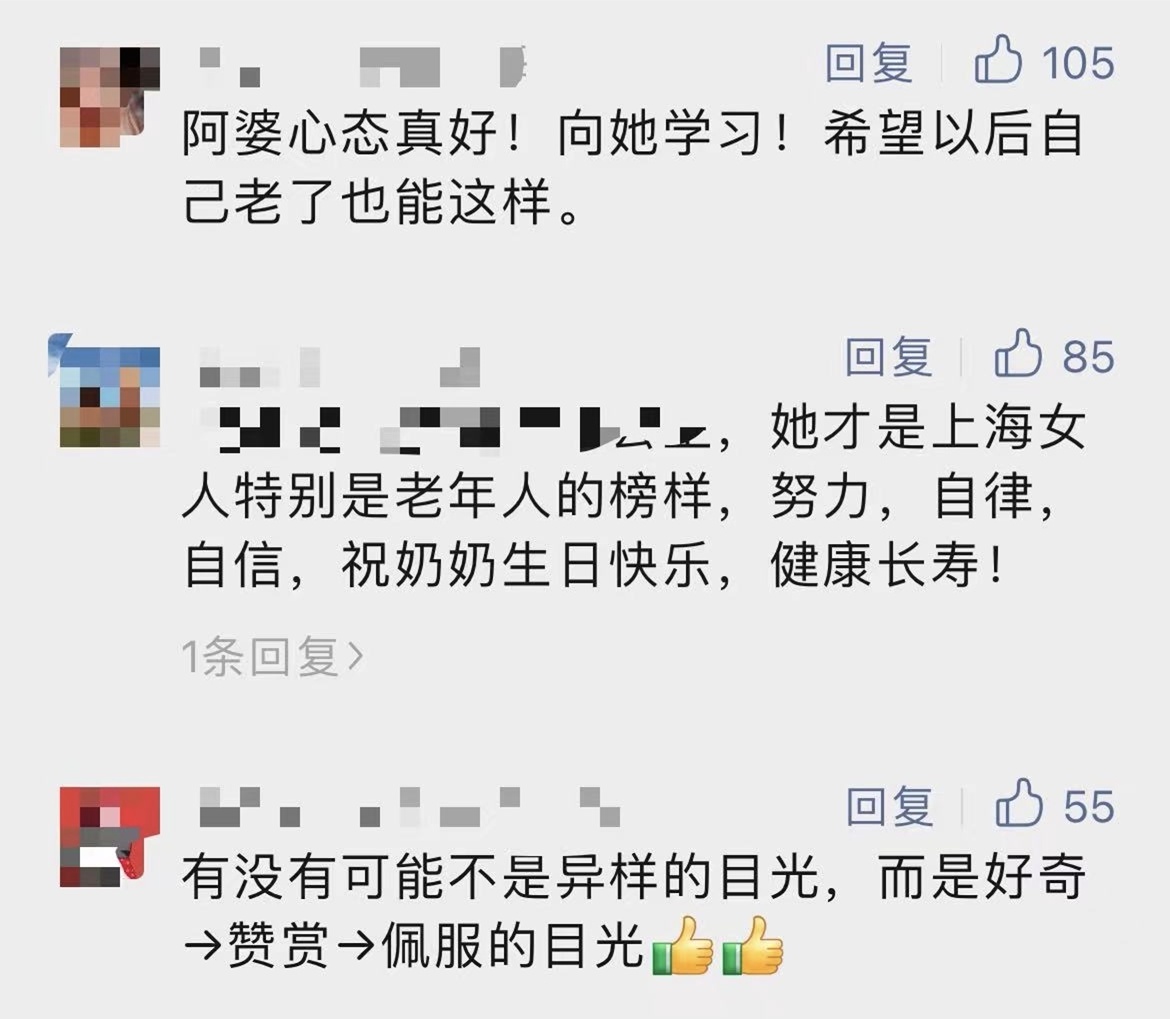 5月16日,是郑阿婆的生日。她没有办寿宴,而是穿上自己钟爱一生的旗袍和高跟鞋,跟着“老小孩”公益组织前往眼下上海最热门的“网红”商圈蟠龙天地打卡拍照,简单地庆祝了一下。