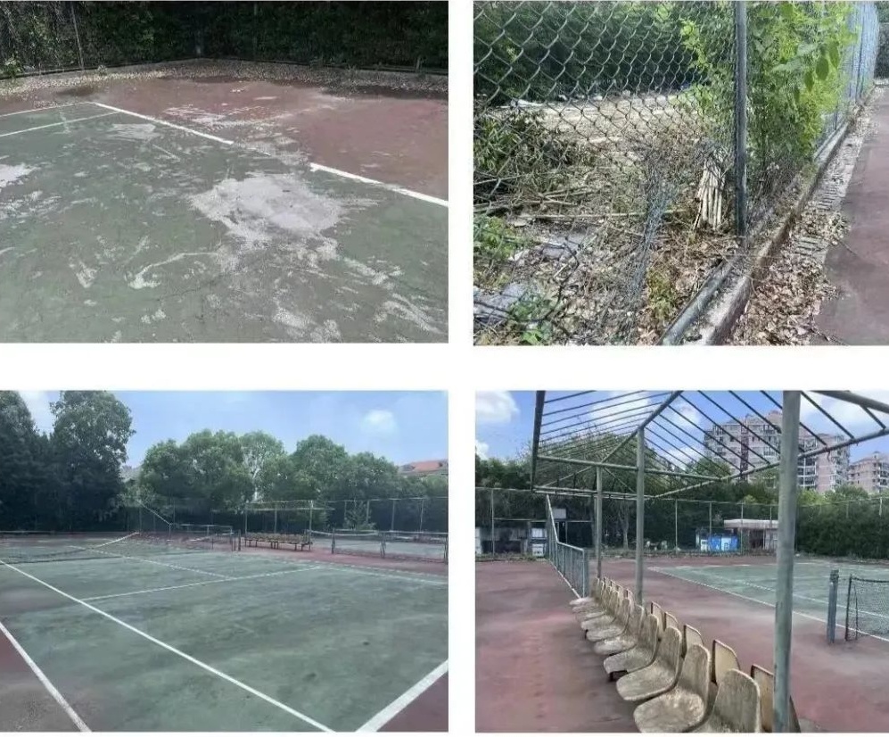 据了解,洞泾镇海欣别墅小区已建成近20年,各项设备设施陈旧,亟待维修更新。网球场自小区建成后便一直处于荒废状态,灯杆灯具缺失,地面出现裂缝、多处坑洼,围网和球网也已破损。“是否能将网球场进行修复出租,增加小区公共收益的同时还能美化小区环境?”业委会主任周晓波萌生了这样的想法。