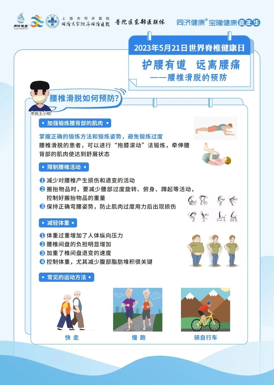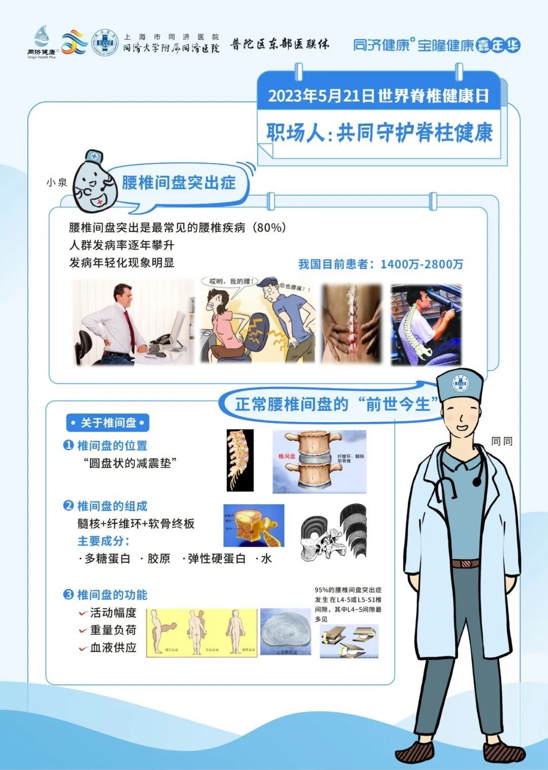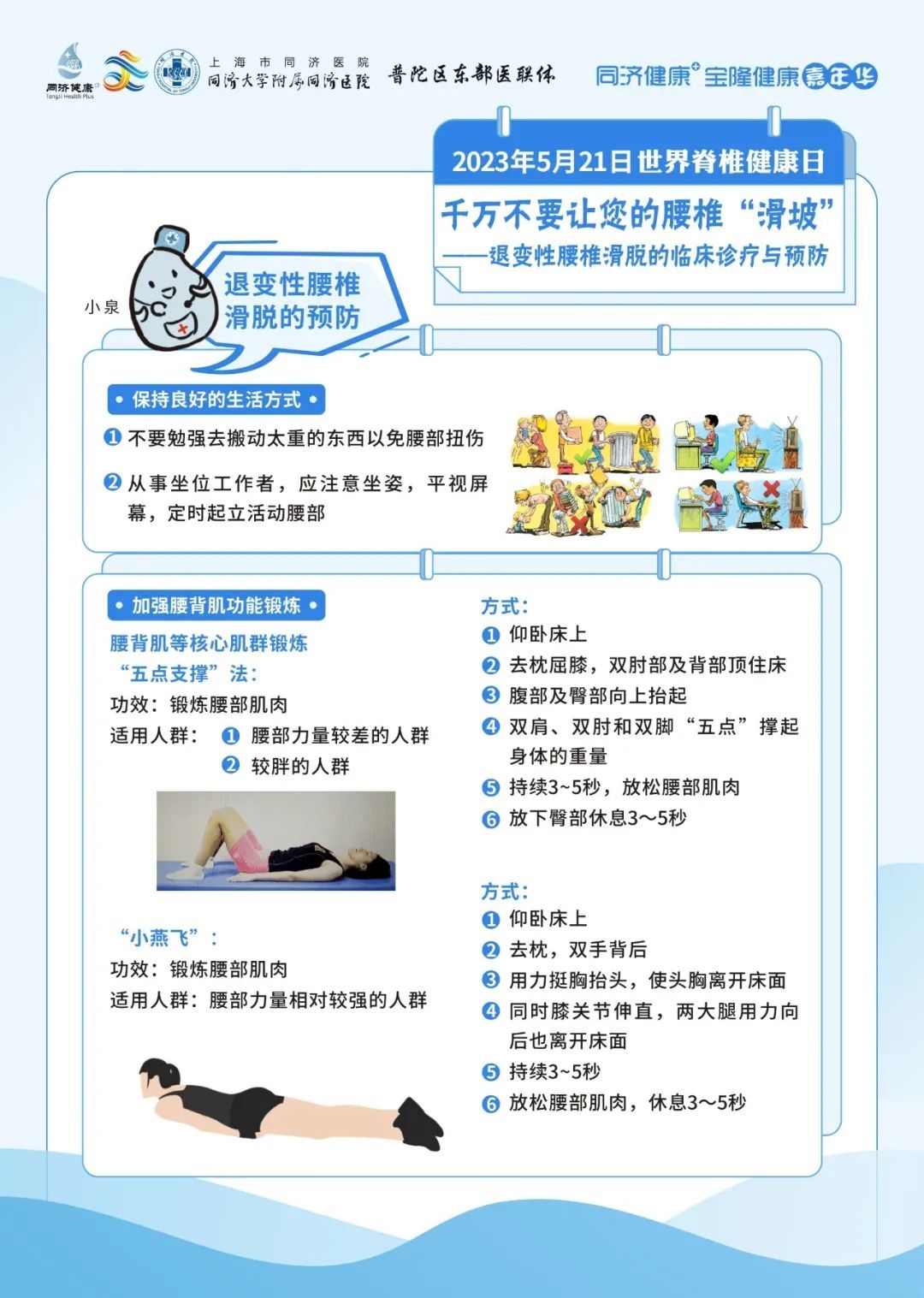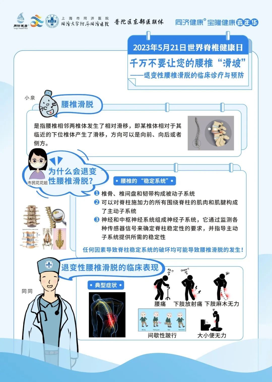 同济大学附属同济医院将于2023年5月21日上午9:00-11:00,由骨科为大家带来脊柱健康的相关科普,教您如何爱护重要的脊柱腰椎。